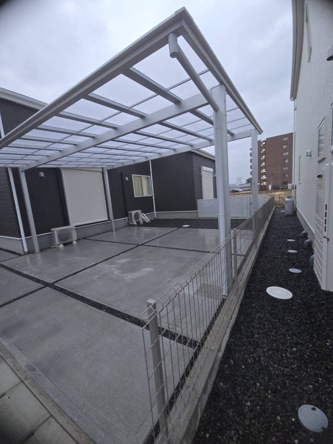 | カーポート、アルミフェンス、メッシュフェンス新設 人工芝敷設 |